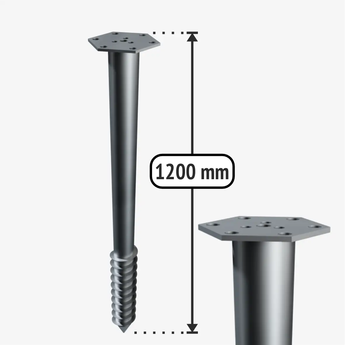 Šis garums ir piemērots terasēm, nelielām ēkām un balstiem, kur nav jāiztur lielas slodzes. Var atstāt līdz 20 cm neieskrūvētu zemē. Tādējādi iespējams atrisināt situāciju, kad reljefs nav līdzens. Savukārt garākus pāļus ar lielāku diametru var izmantot, sākot ar terasēm, līdz māju pamatu ierīkošanai. M veida skrūvpāļu plāksne ir paredzēta montējamā karkasa atbalstam. Ja skrūvpāļu pamatus nav izdevies uzstādīt vienā līnijā, tas nav nekas slikts, jo plāksne ir plata un nav nepieciešams, ka karkass tiek atbalstīts tieši centrā. Plāksnē ir arī vieta tapas uzstādīšanai un papildu caurumi tiem gadījumiem, kad karkass netrāpa centrā. Uz skrūvpāļu plāksnes iespējams arī uzskrūvēt jebkuru vēlamo turētāju. Izmantojot tapu, rāmi var uzstādīt ar milimetra precizitāti. Lielākam daudzumam vai garākiem pāļiem būs nepieciešams aprīkojums.